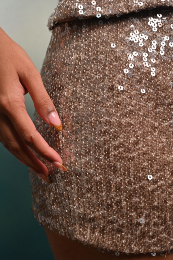 - Details: Side zipper closure, tube top with a diagonal-cut hem (front & back), snatched fit mini skirt ,contoured fit top