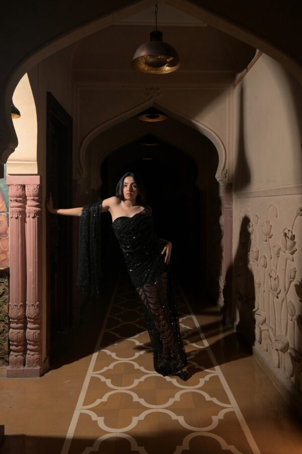 • Fabric: Imported sequins and beaded net fabric with soft crepe base